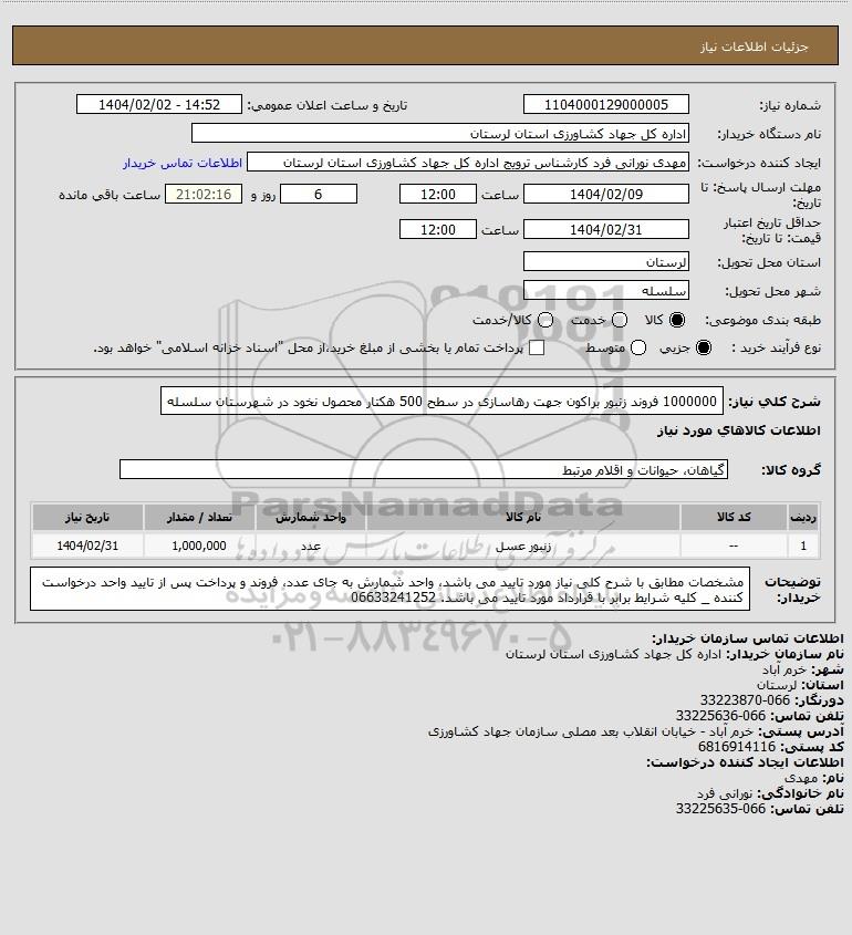نام دستگاه خریدار:اداره کل جهاد کشاورزی استان لرستان