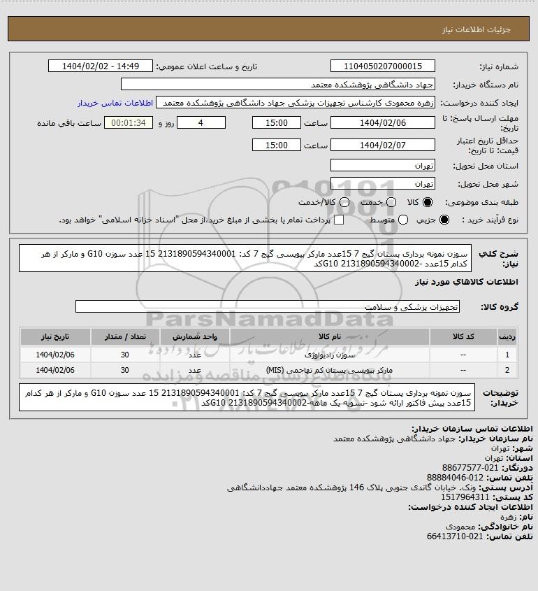 | 2 | -- | مارکر بیوپسی پستان کم تهاجمی (MIS) | عدد | 30 | 1404/02/06 |
