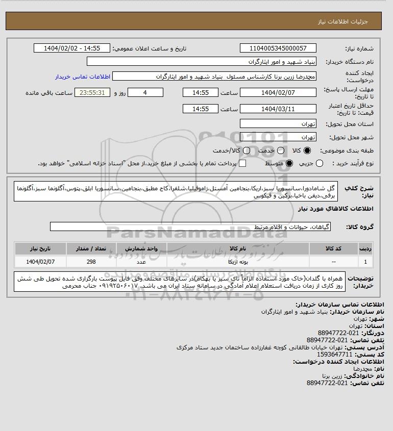نام دستگاه خریدار:بنیاد شهید و امور ایثارگران