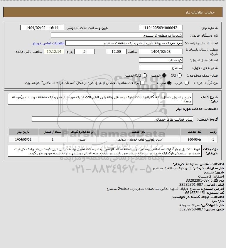 نام دستگاه خریدار:شهرداری منطقه 2 سنندج