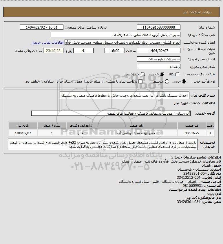 استعلام احداث سپتیک تانک در انبار نفت شهدای وحدت خاش با خطوط فاضلاب متصل به سپتیک, استعلام احداث سپتیک تانک در انبار نفت شهدای وحدت خاش با خطوط فاضلاب متصل به سپتیک
