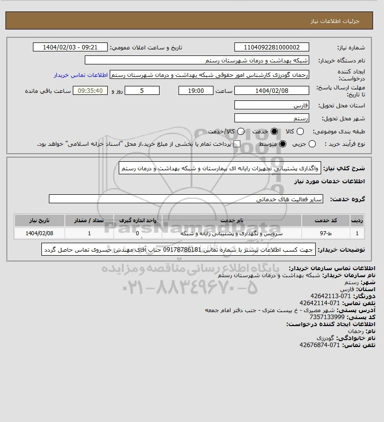 نام دستگاه خریدار:شبکه بهداشت و درمان شهرستان رستم