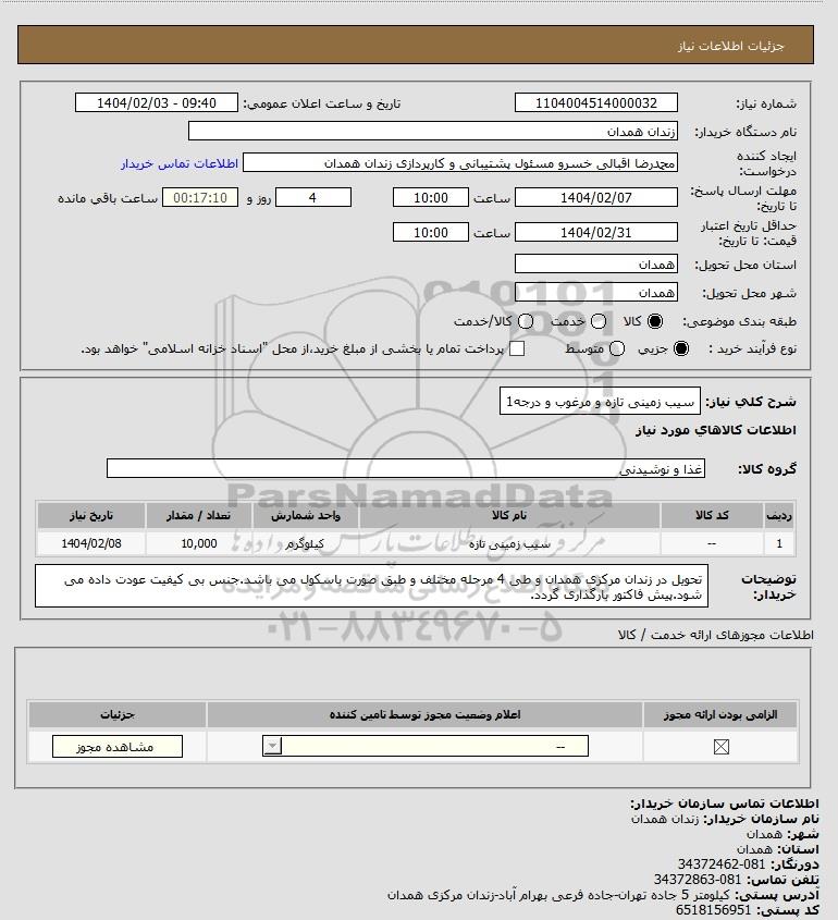 | 1 | -- | سیب زمینی تازه | کیلوگرم | 10,000 | 1404/02/08 |