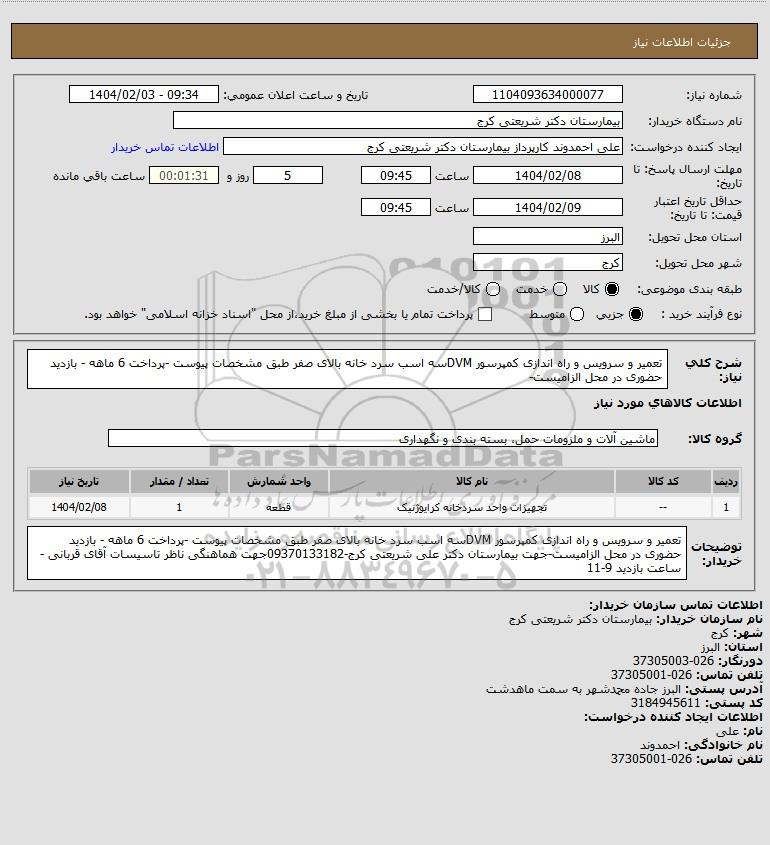 نام دستگاه خریدار:بیمارستان دکتر شریعتی کرج