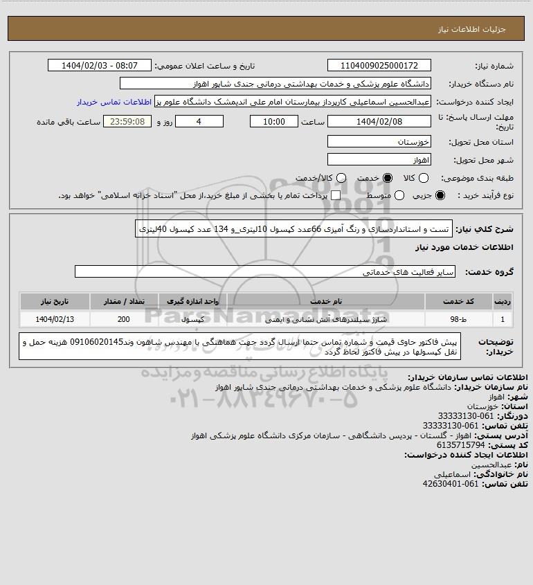 شرح کلی نیاز: تست و استانداردسازی و رنگ آمیزی 66عدد کپسول 10لیتری_و 134 عدد کپسول 40لیتری