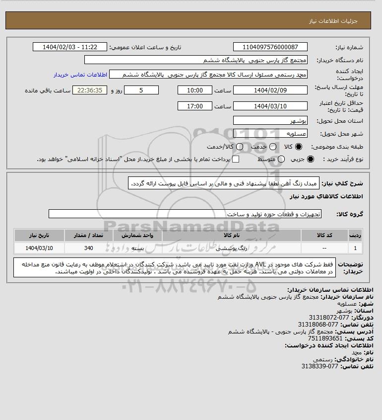 شرح کلی نیاز: مبدل زنگ آهن لطفا پیشنهاد فنی و مالی بر اساس فایل پیوست ارائه گردد.