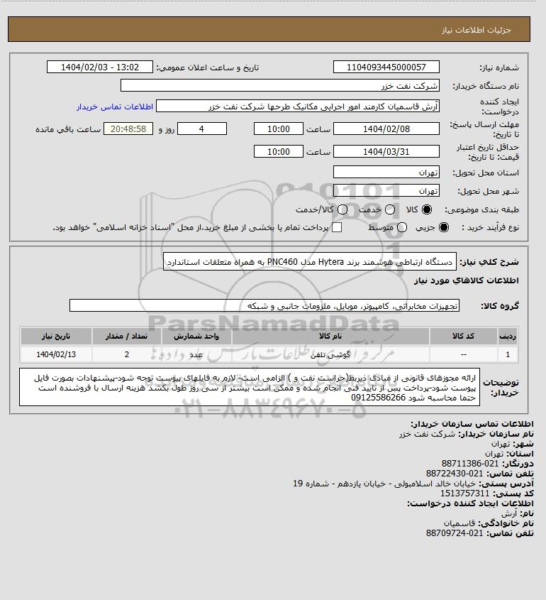 شرح کلی نیاز: دستگاه ارتباطی هوشمند برند Hytera مدل PNC460 به همراه متعلقات استاندارد