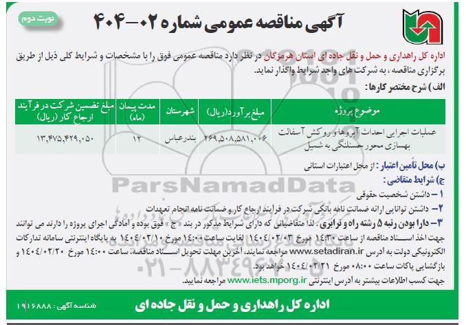 آگهی مناقصه عمومی شماره 02-404 - نوبت دوم