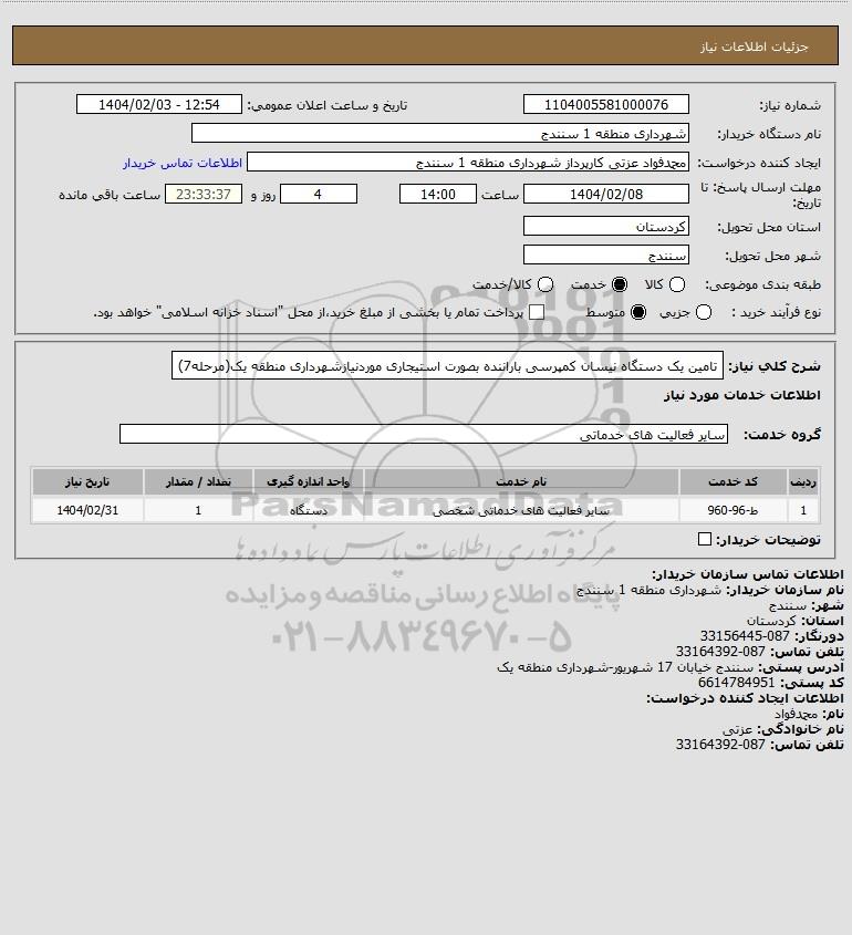 نام سازمان خریدار: شهرداری منطقه 1 سنندج