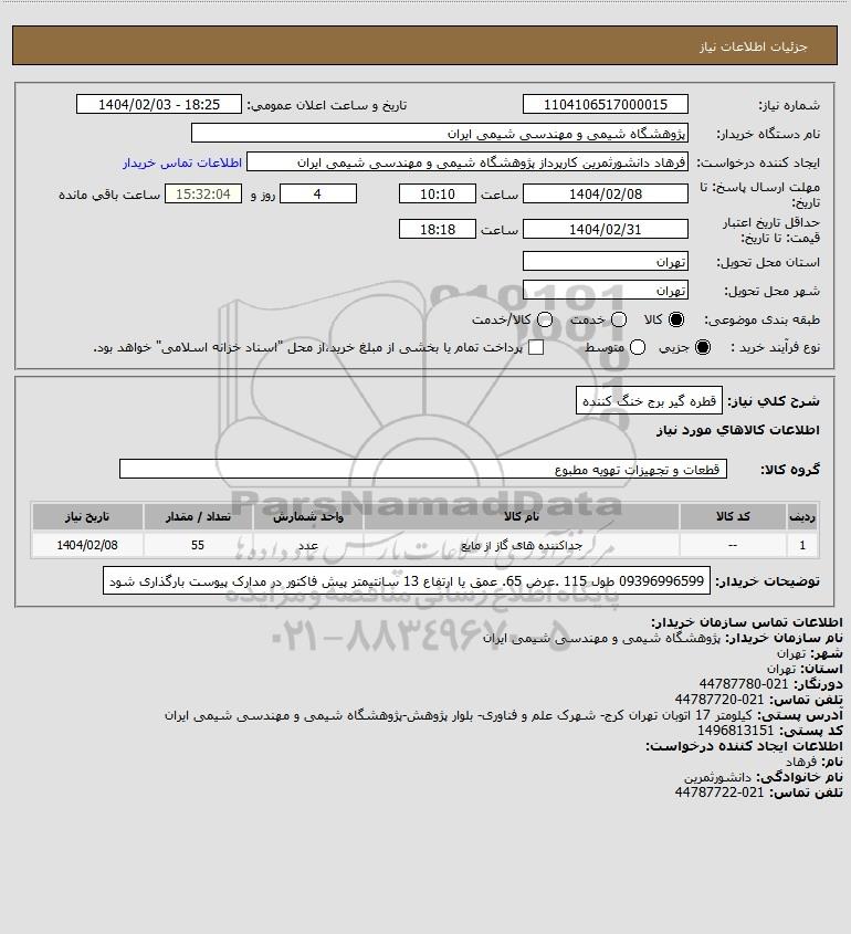 نام دستگاه خریدار:پژوهشگاه شیمی و مهندسی شیمی ایران