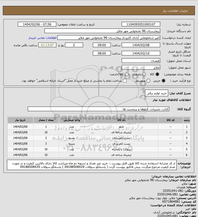 نام دستگاه خریدار:بیمارستان 96 تختخوابی مهر ملایر