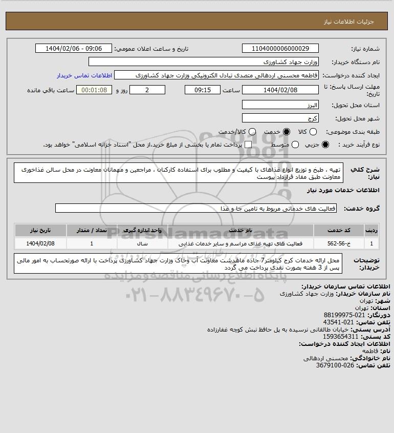 نام دستگاه خریدار:وزارت جهاد کشاورزی