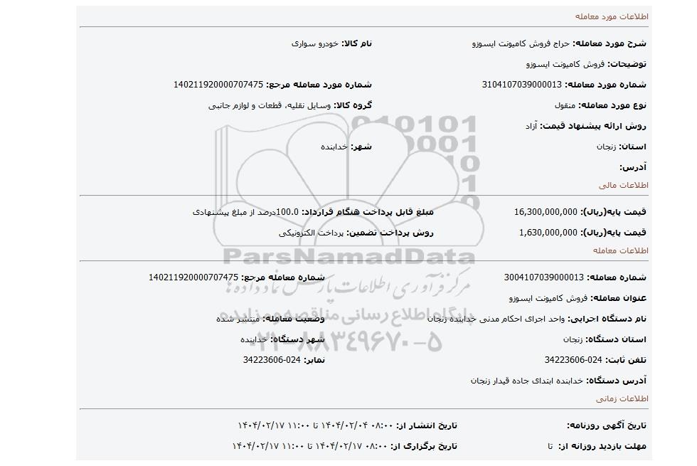 | عنوان معامله: فروش کامیونت ایسوزو | ||