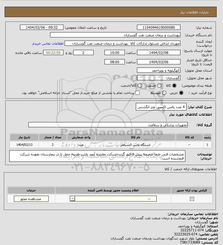 | 1 | -- | دستگاه پالس اکسیمتر | عدد | 2 | 1404/02/13 |