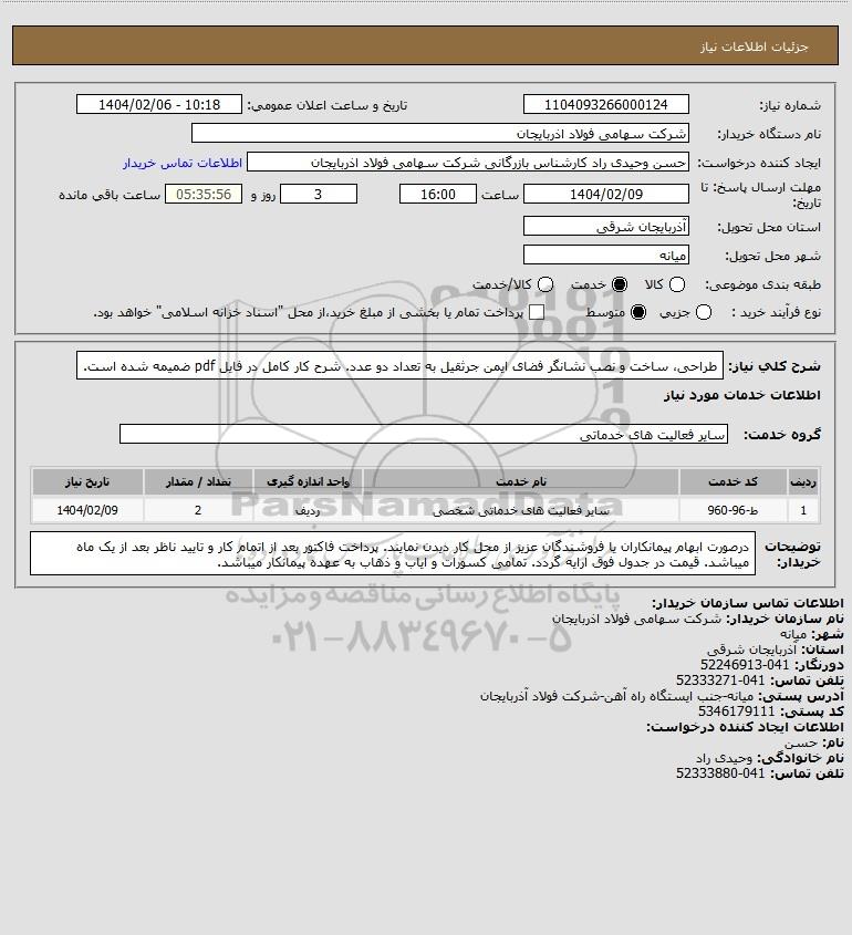 نام دستگاه خریدار:شرکت سهامی فولاد اذربایجان