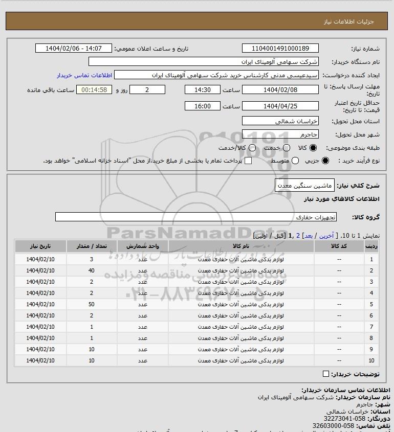 | 5 | -- | لوازم یدکی ماشین آلات حفاری معدن | عدد | 50 | 1404/02/10 |