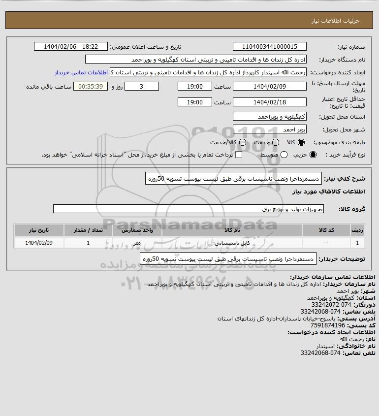 استعلام دستمزداجرا ونصب تاسیسات برقی طبق لیست پیوست تسویه 50روزه, استعلام دستمزداجرا ونصب تاسیسات برقی طبق لیست پیوست تسویه 50روزه