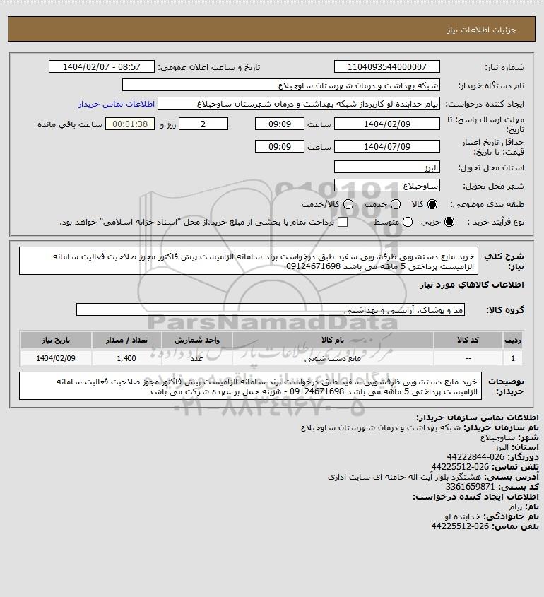 نام دستگاه خریدار:شبکه بهداشت و درمان شهرستان ساوجبلاغ