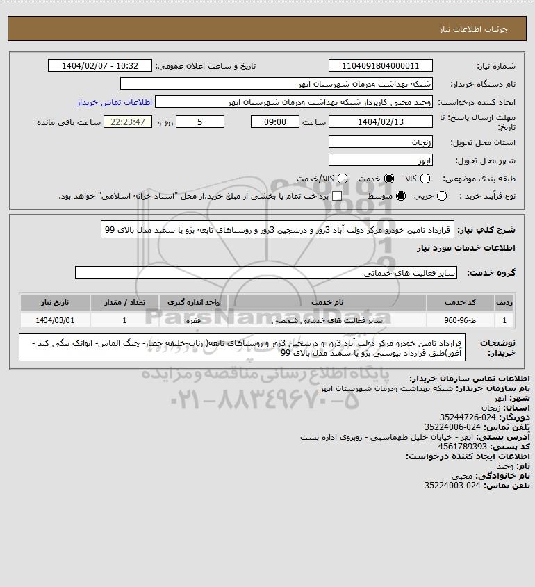 نام دستگاه خریدار:شبکه بهداشت ودرمان شهرستان ابهر