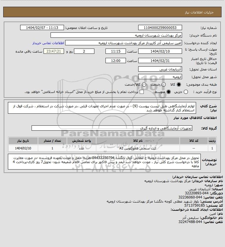 نام دستگاه خریدار:مرکز بهداشت شهرستان ارومیه