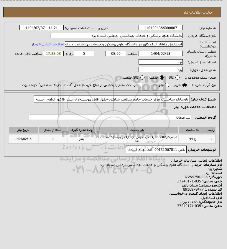 شماره نیاز: 1104004366000007
