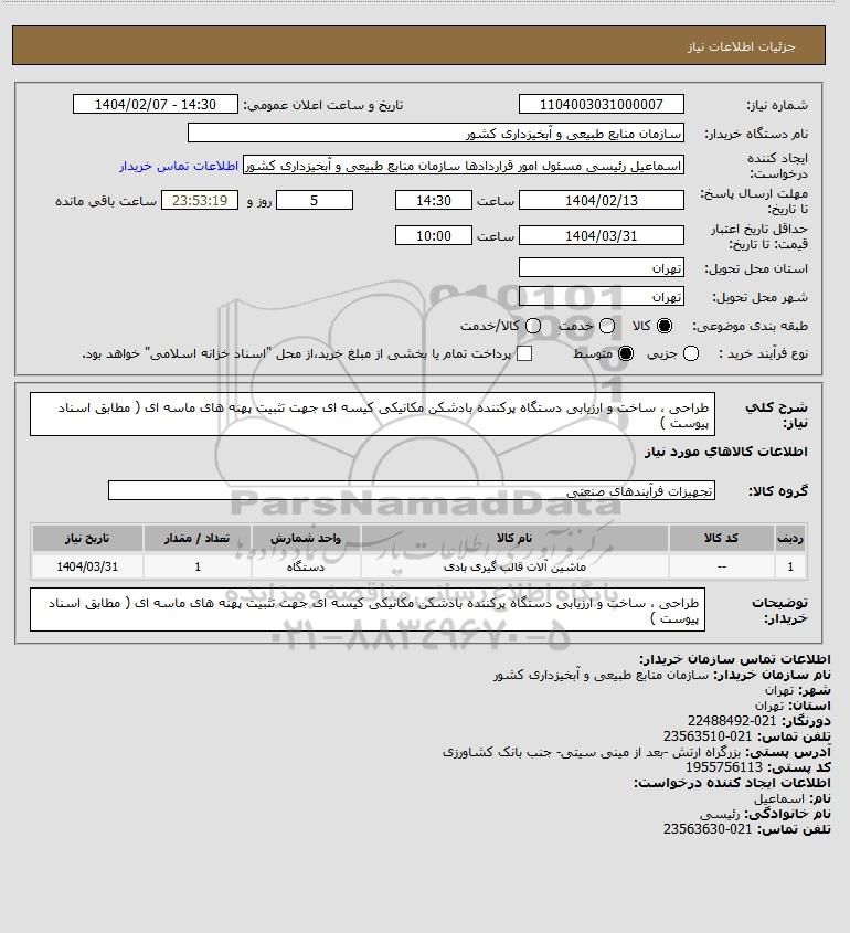 نام دستگاه خریدار:سازمان منابع طبیعی و آبخیزداری کشور