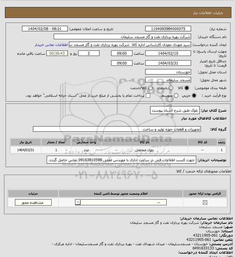 شرح کلی نیاز: بلوک طبق شرح اسناد پیوست