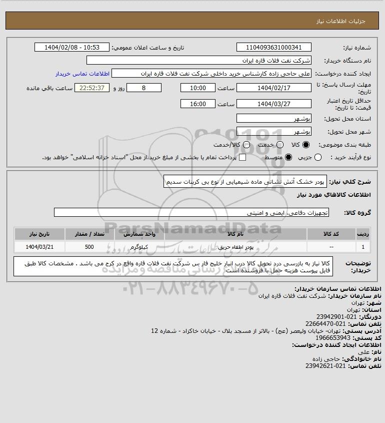 | 1 | -- | پودر اطفاء حریق | کیلوگرم | 500 | 1404/03/21 |
