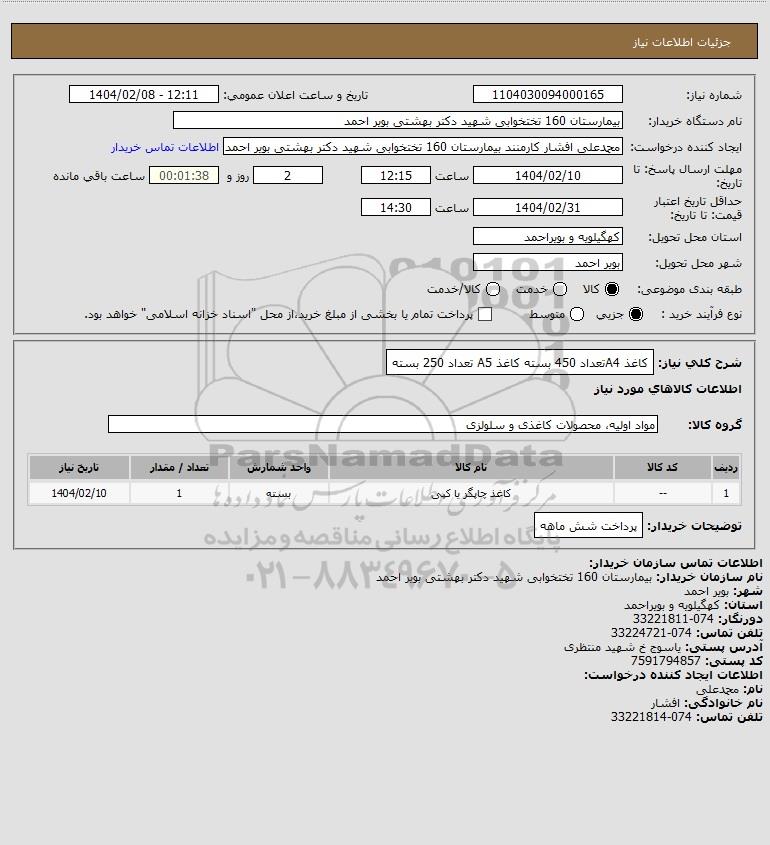 شرح کلی نیاز: کاغذ A4تعداد 450 بسته