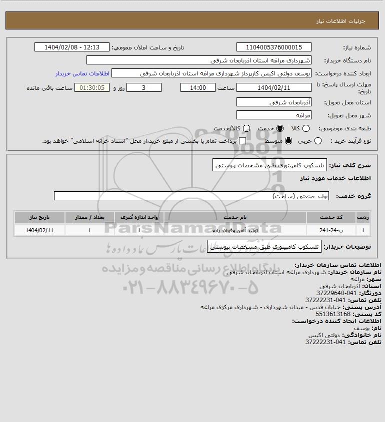 نام دستگاه خریدار:شهرداری مراغه استان اذربایجان شرقی