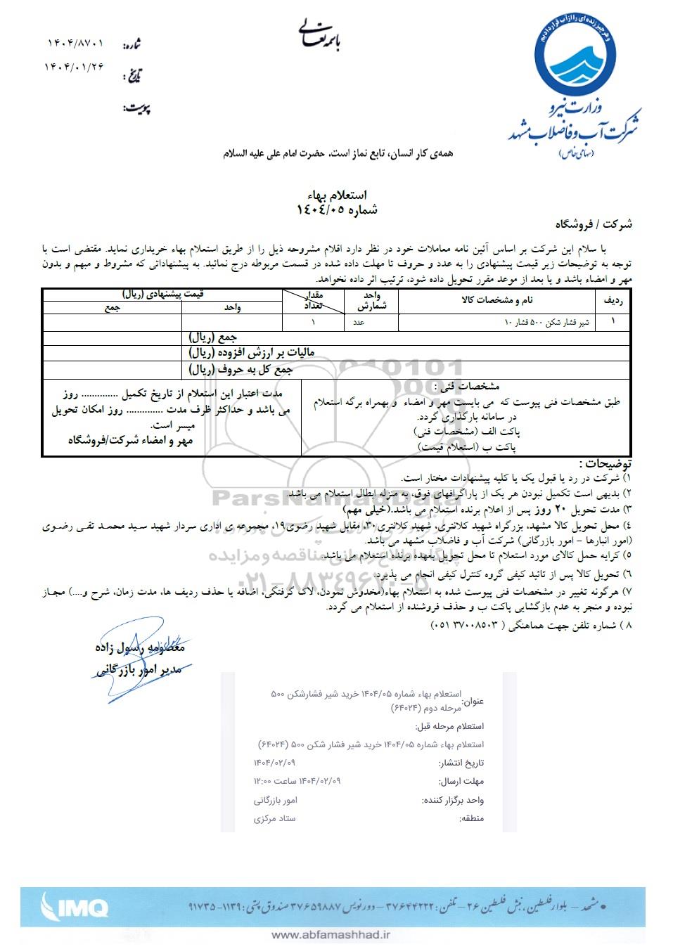 استعلام بهاء شماره 1404/05