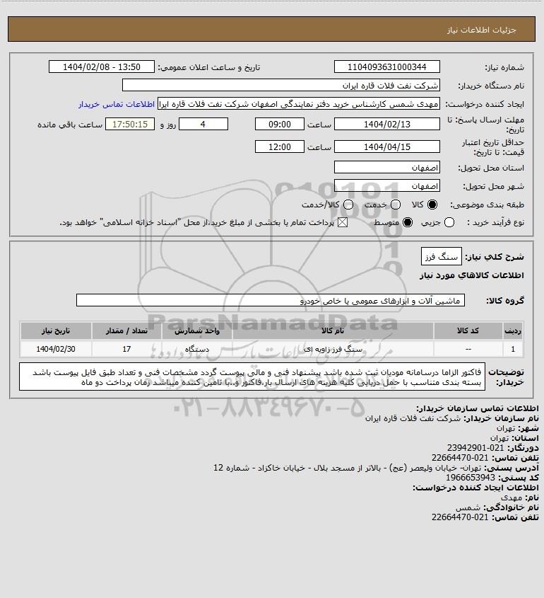 نام دستگاه خریدار:شرکت نفت فلات قاره ایران