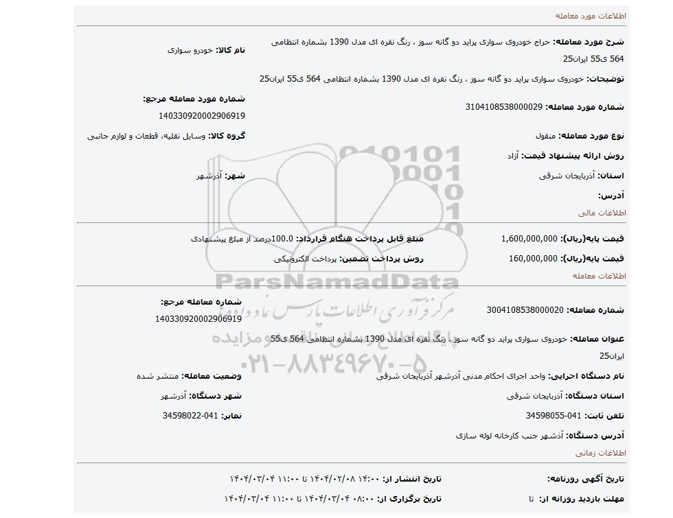| شماره مورد معامله: 3104108538000029 | شماره مورد معامله مرجع: 140330920002906919 | |