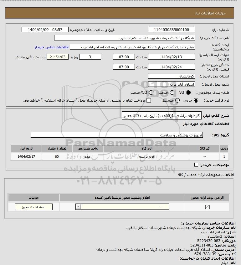 نام دستگاه خریدار:شبکه بهداشت درمان شهرستان اسلام ابادغرب