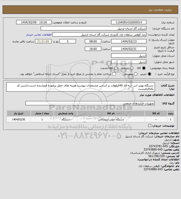 نام دستگاه خریدار:شرکت گاز استان اردبیل