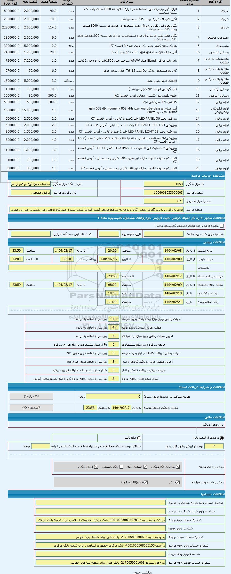 | کد مزایده گزار | 1053 | نام دستگاه مزایده گزار | سازمان جمع آوری و فروش اموال تملیکی | |