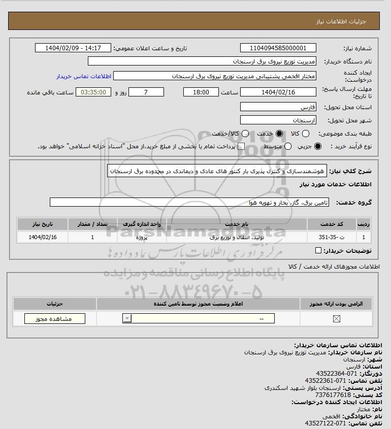 استعلام هوشمندسازی و کنترل پذیری بار کنتور های عادی و دیماندی در محمدوده برق ارسنجان, استعلام هوشمندسازی و کنترل پذیری بار کنتور های عادی و دیماندی در محمدوده برق ارسنجان