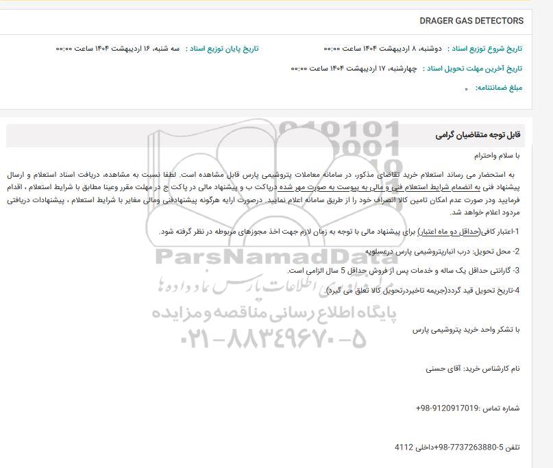 استعلام DRAGER GAS DETECTORS  , استعلام DRAGER GAS DETECTORS