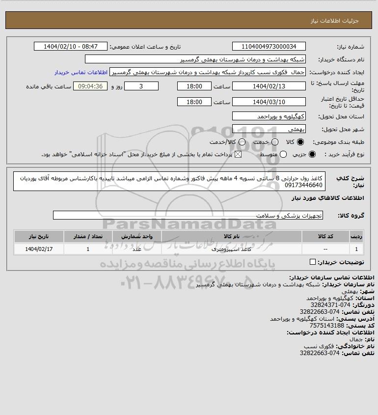نام دستگاه خریدار:شبکه بهداشت و درمان شهرستان بهمئی گرمسیر