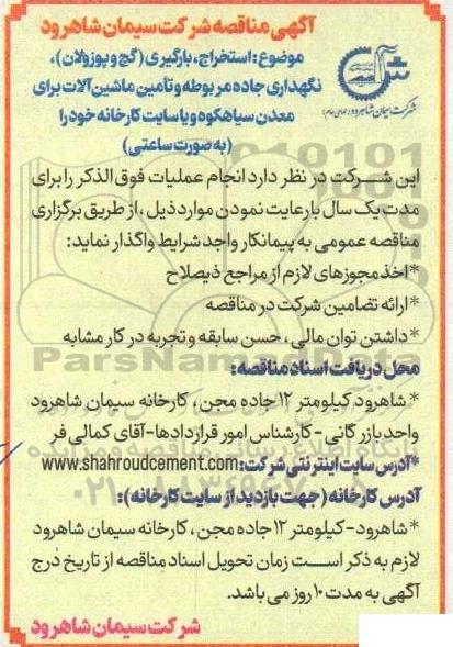 مناقصه استخراج، بارگیری (گچ و پوزولان) نگهداری جاده مربوطه و تامین ماشین آلات, مناقصه استخراج، بارگیری (گچ و پوزولان) نگهداری جاده مربوطه و تامین ماشین آلات