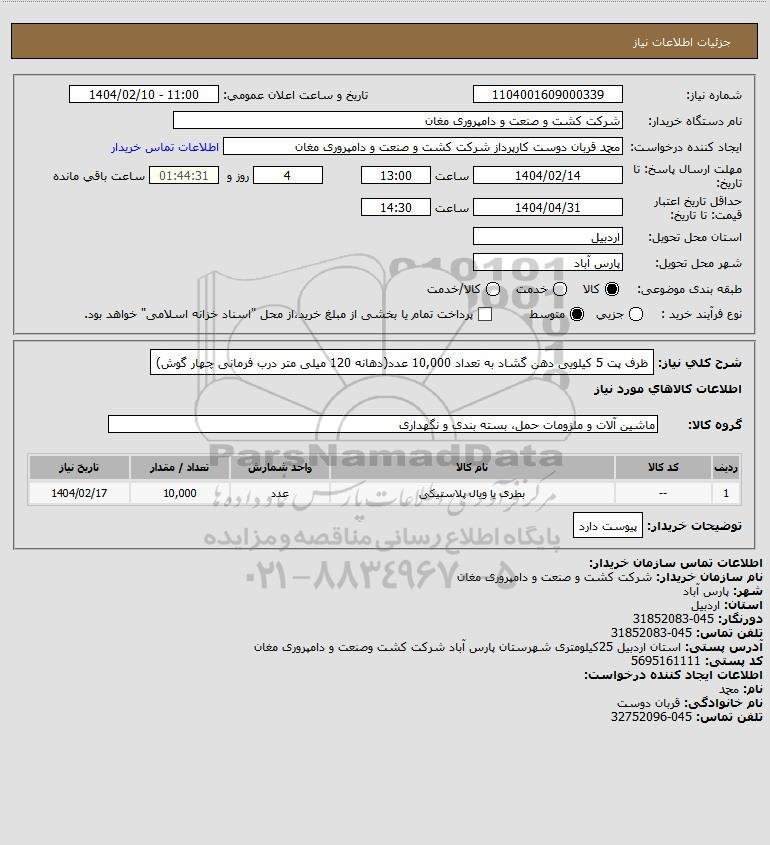 نام سازمان خریدار: شرکت کشت و صنعت و دامپروری مغان