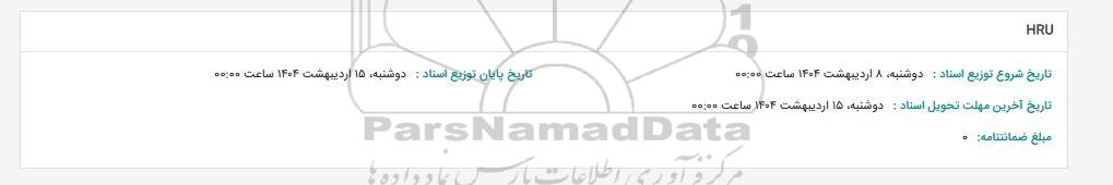 تاریخ پایان توزیع اسناد: دوشنبه 15 اردیبهشت 1404 ساعت 00:00