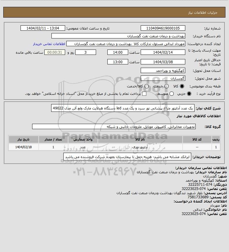 نام دستگاه خریدار:بهداشت و درمان صنعت نفت گچساران