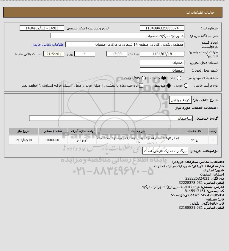 نام دستگاه خریدار:شهرداری مرکزی اصفهان