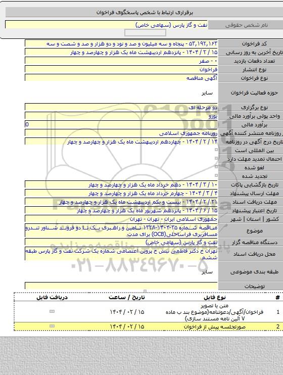 این مناقصه در تاریخ 1404/02/14 شروع و مهلت آن تا تاریخ 1404/02/21 میباشد.