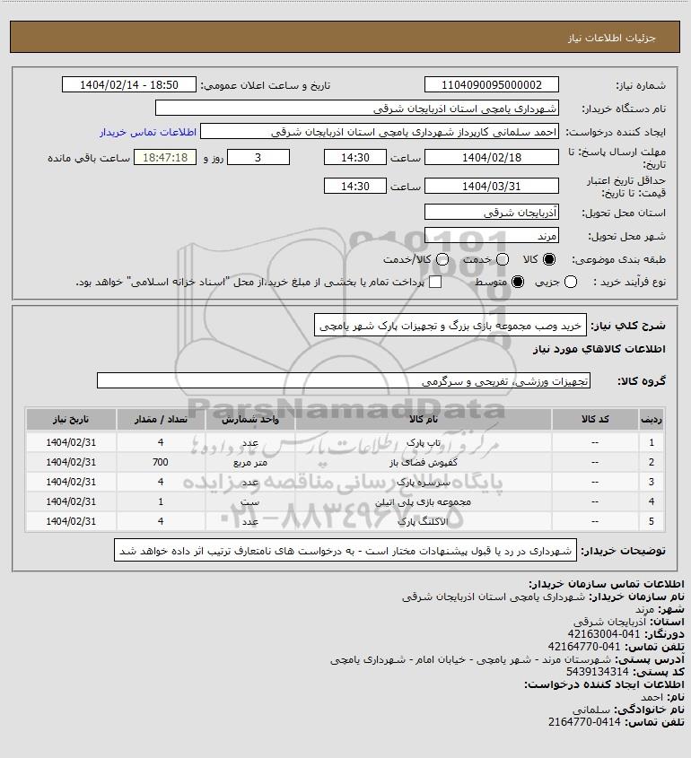 استعلام خرید وصب مجموعه بازی بزرگ و تجهیزات پارک شهر یامچی, استعلام خرید وصب مجموعه بازی بزرگ و تجهیزات پارک شهر یامچی