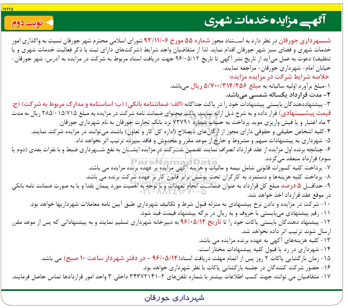 شهرداری جورقان در نظر دارد نسبت به واگذاری امور خدمات شهری و فضای سبز شهر جورقان اقدام نماید.