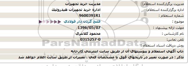 اداره برگزارکننده استعلام: اداره خرید تجهیزات هیدرولیک