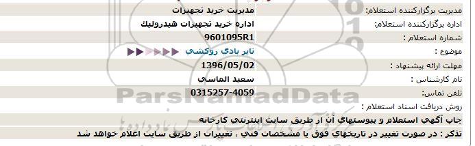 اداره برگزارکننده استعلام: اداره خرید تجهیزات هیدرولیك
