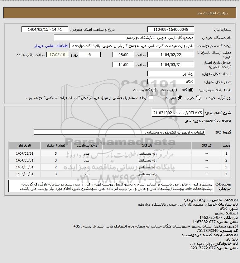 شرح کلی نیاز: RELAYS//تقاضای0340021-21